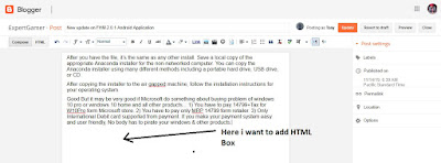 In  this article i am going to show you how to add HTML code box in your  blog. As a blogger i used to share couple of codes so i feel to share  code in a box, So it would be easy to copy by visitors on my blog.  Insert a box in your blog is not complicated it is very easy to add HTML  box. Here are few steps to follow and you will be get your HTML box  into your Blog post. How to Add HTML Code Box in Blogger Step by Step  Guide.